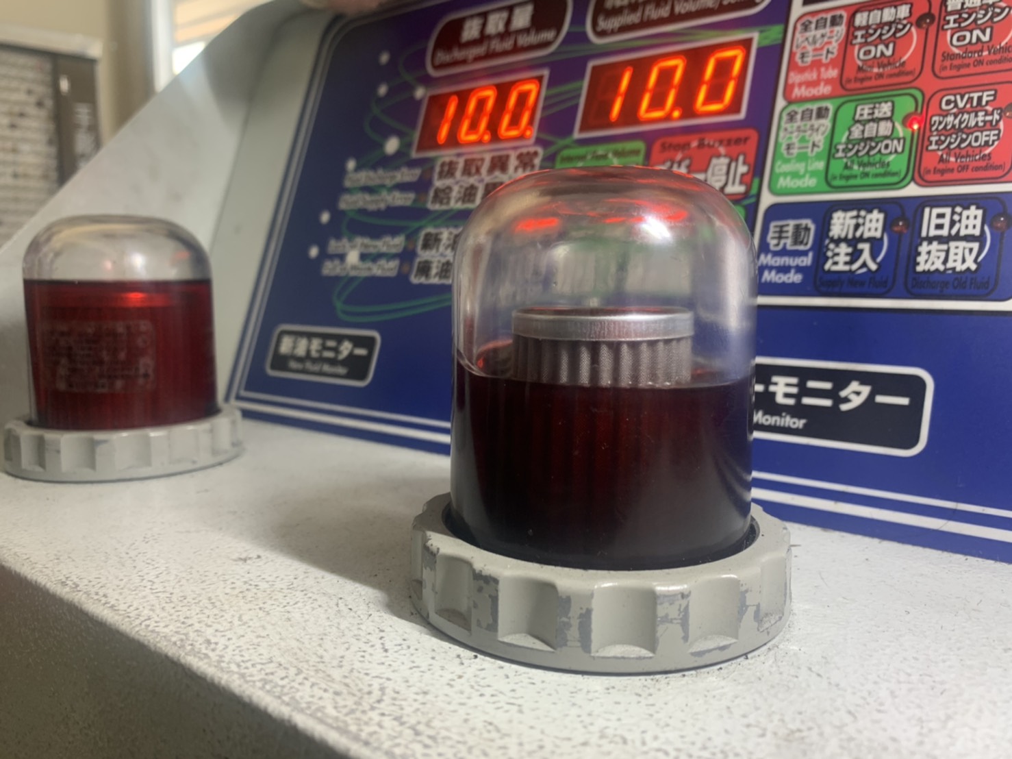 新油、ミッション内のオイル、抜き取り油にそれぞれモニタがあり、常に油の状態を確認しながらの交換が可能です。