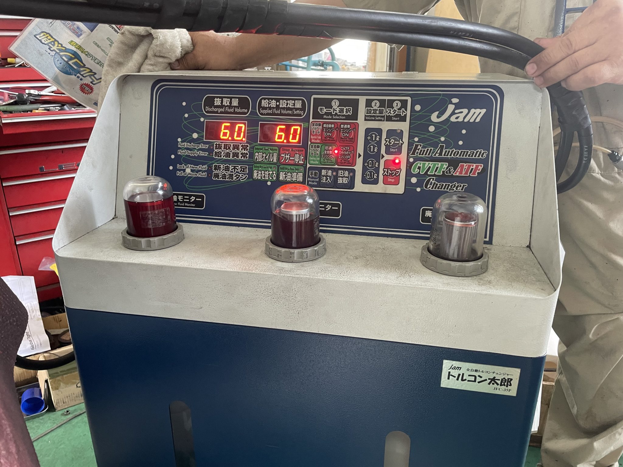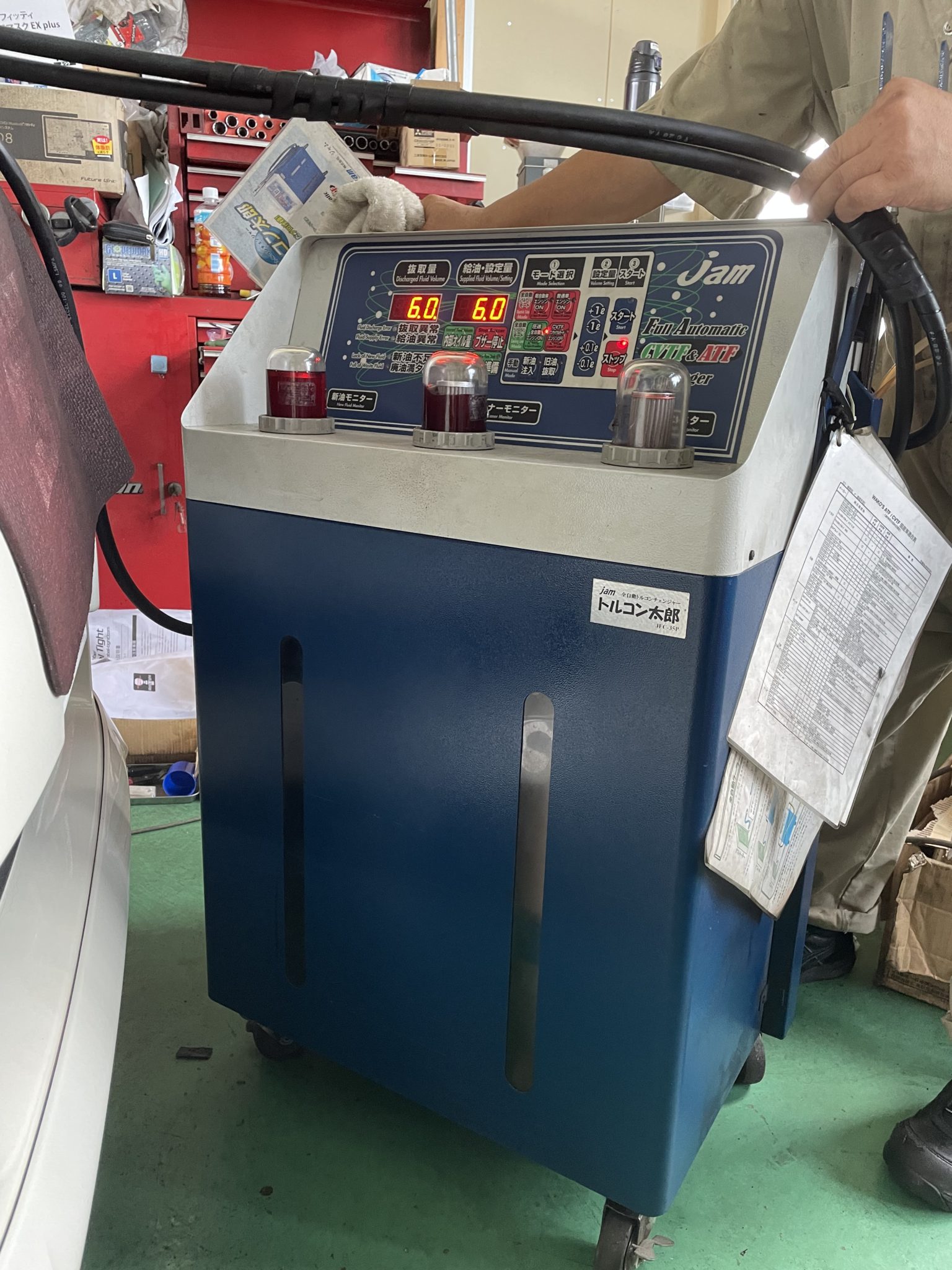 圧送式のATF(オートマオイル)を交換、クリーニングまでできる機械です。